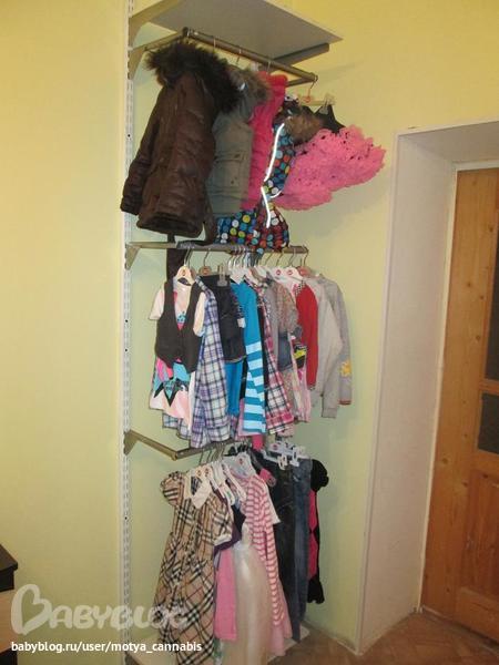 Интерьерное решение детской комнатыУ меня наверное совсем не дизайнерское решение , но так надоело хранить дочкины вещи по камодам , а теперь все на своих местах, только вот вешелок пока повесить все нехватает((((