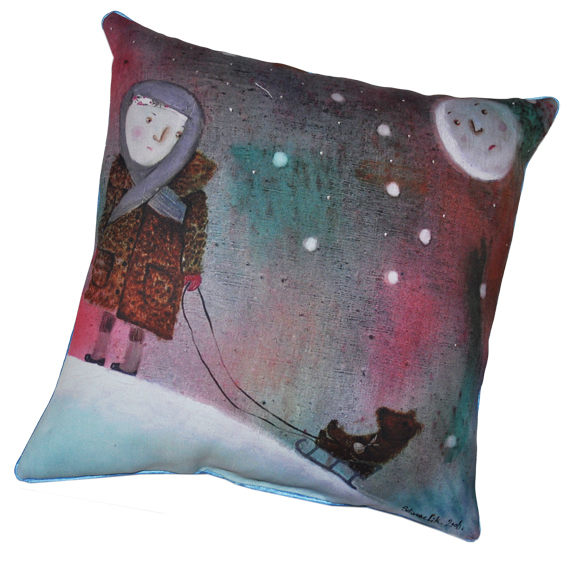 Господи, какая красота!!! Это прям картины, а не подушки...Мне очень полюбилась с девочкой, которая Мишку везет на санках...она на мою маму в детстве похожа. Вот смотрите: Даже платочек так же из под шапочки торчит)))Прям так и вижу как она саночки катит...Спасибо,что показали...А чьи это?