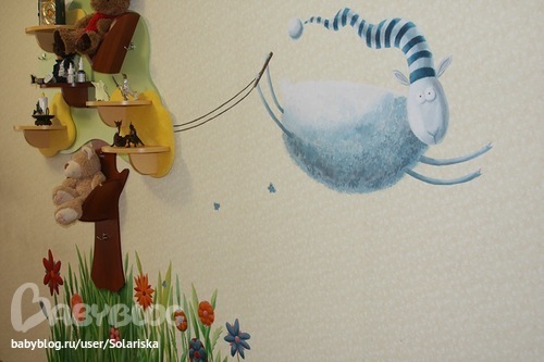 на противоположной стене - игровая зона. Там нарисован тот же барашек, но уже в более активной фазе.