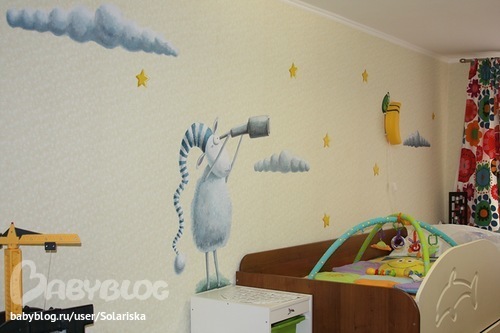 А теперь покажу какие изумительные рисунки сделала к рождению племянницы моя сестра. Рисовала прямо по обоям!!!
