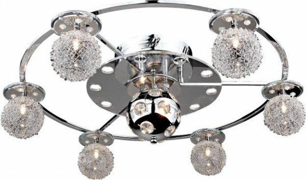 Электрика, освещение.смотрю люстры, вообще у нас на стене 5 квадратных спотов в стекле с хромированным основанием.и поэтому я искала какую то люстру с квадратными спотами, причем думаю споты, которые можно поворачивать(как видно в некоторых вариантах) лучше,т.к. можно распределить свет по всей комнате.а ещё порывшись в интернете, такое ощущение влюбилась вот в такую люстру, где нет квадратов, а наоборот шары...как вам?все галогенки...что ещё посоветуете?