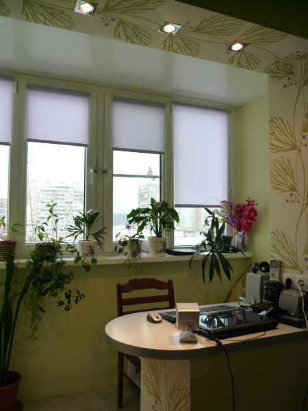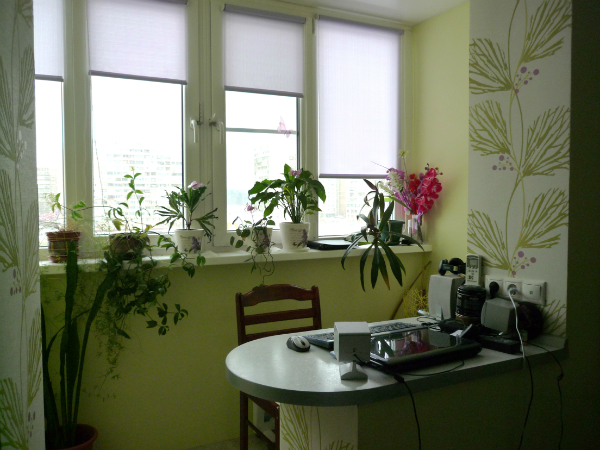 Интерьерное решение лоджий, балконовПриветик, хочу показать наш балкончик)) Много еще недоделок, горшки , цветы, стул - все поменяем со временем. Изначально это должно было мое рабочее место быть(букеты из конфет клею, у меня много материала, стол кухонный вечно заваливаю во время работы).... И только мы почти все доделали, как у мужа начались отчеты по работе, он поставил свой ноут и засел там. Потихоньку мое рабочее место обросло всякими копмьютерными приспособлениями и с ним попрощалась на всегда. Теперь это командный пункт танковой дивизии. Убила бы того, кто придумал эти дурацкие танчики)))