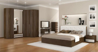 Сама спальня будет такой только без шкафов под одежду. Кровать с подъемным механизмом и ящиком для хранения.
