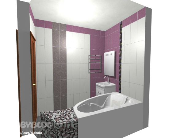 Туалет, ваннаякафель фирмы Керама Марацци, теплый пол, натяжной потолок. Т.к. ванная не сильно большая, а туалет Г образной формы, то стиралку ставим в туалет. Будет примерно так.