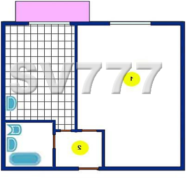 Вход в квартиру, где цифра 2 это наш супер-маленький коридорчик (коричневым выделен) это двери. Правая-в комнату, прямо-кухня, левая- с/y.
