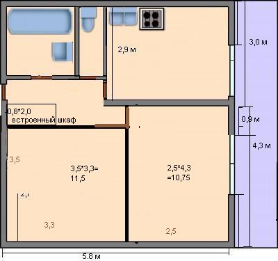 ООО, у нас тоже такая квартира, и тоже делали перепланировку. И вот что у нас получилось