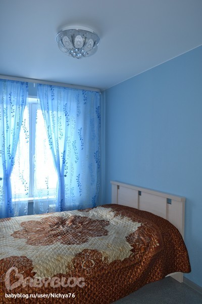 Да покрывало я знаю.оно старое, когда еще комната была бежевая. Новой спальне 2 дня. Белое точно не вариант,кошка у нас серая шерсть от нее и мои хватают все руками. В выхи в икею собираемся может что присмотрю. Шторы эти плохие,дешевые и очень много уж голубого.