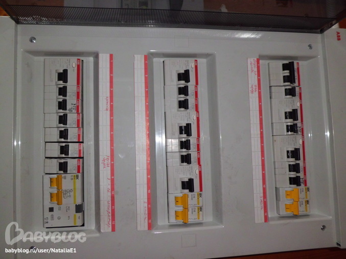 Помимо общего УЗО на щиток делается на каждый контачащий с водой предмет свое УЗО( Стиралка, посудомойка, водонагреватель, полотенцесушитель - если он электрический) а то при каких-то проблемах в одном предмете будет отключаться вся квартира. Щитки принимают вот такой вид.