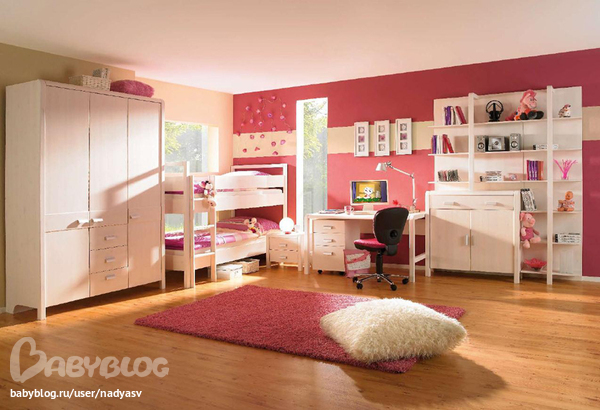 А у вас комната большая? И что примерно хотите? У меня даже нет фото комнаты,только куски на заднем плане за детками)))) Одна стена у меня в голубых обоях,и возле неё стоит кровать сыночка ванильного цвета,а постельное бельё голубых и жёлтых оттенков.Там где кровать дочи,у меня розовые обои,кровать ванильная и постелька у неё в розовых, и ванильных тонах.По другим стенам ванильные обои со всякими зверушками,типа Винни пуха импортного))))Шкаф один большой,мы его делали по моим эскизам,он цвета ваниль,с разноцветными выдвижными ящиками,сделан на всю стену в потолок.Занавески молочные нитки,карнизы жёлтые с разноцветными кольцами.