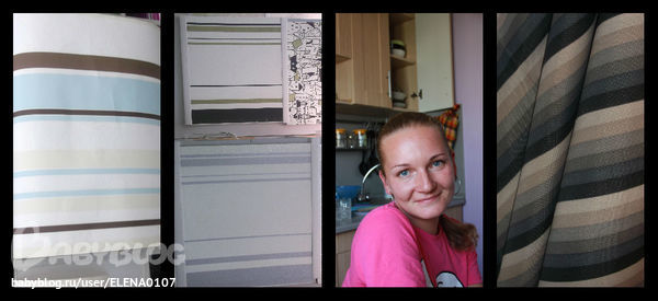 Тоже коричнево-бежево-бирюзовая полоска на обоях, но вертикально) С бирюзой обои как-то легче мне кужутся (если выбирать из ваших предложений) Фасаду кухни как у Кати ниже))