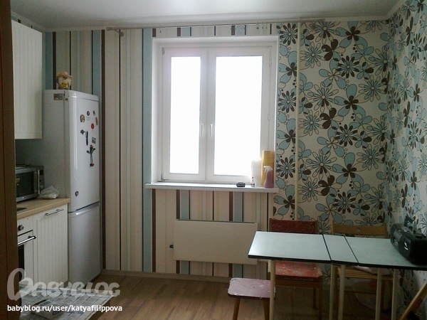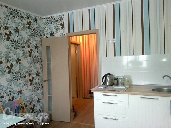 Первые обои- так выделена стена в нашей детской) это бумажные обои- они никак не подойдут на кухню- их нельзя мыть(