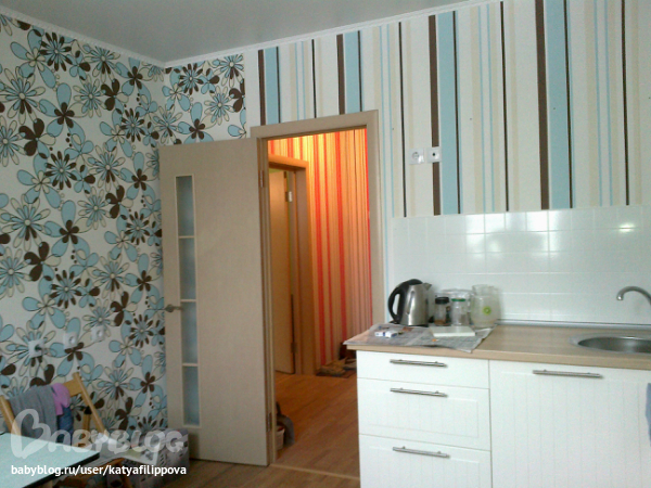 Можно мне слово сказать про кухню. Мне все понравилось. И обои и мебель. Только я не совсем поняла ,почему полосатые обои до конца стены не поклеили (первое и последее фото)? А шторочки я бы белые повесила (икеевские мне нравятся). Стол,стулья другие и кухня будет красоткой. Молодцы.