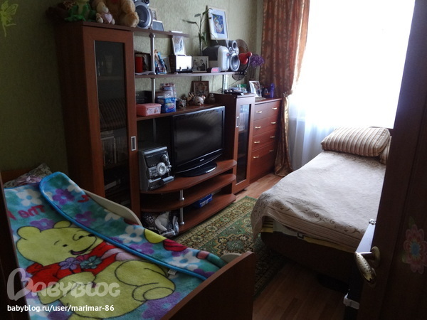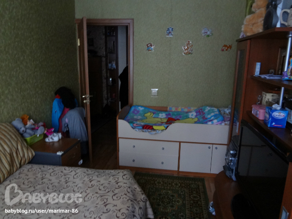 Комната 10 кв м, живем в троем. Поменяли маленькую кроватку на побольше, теперь прохода нет вообще.