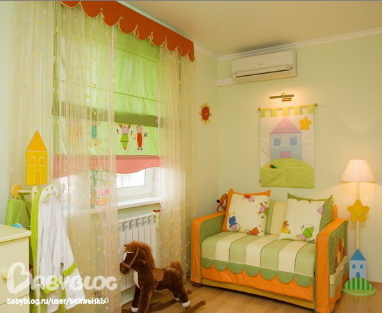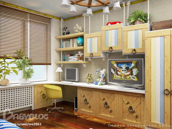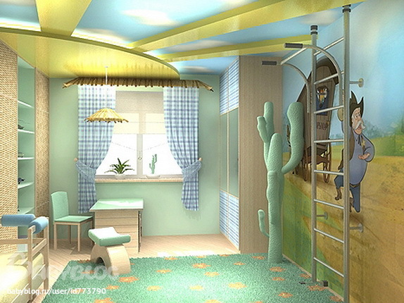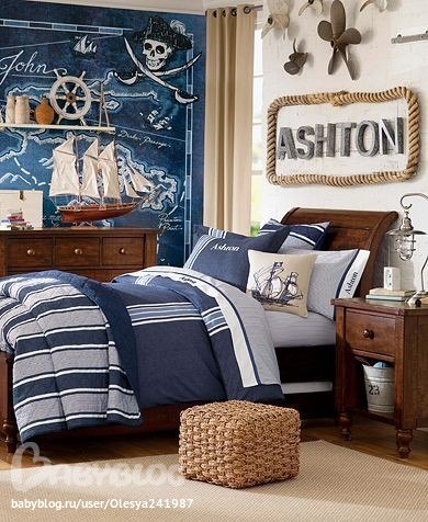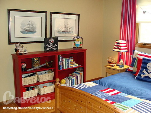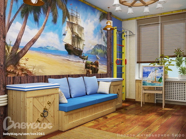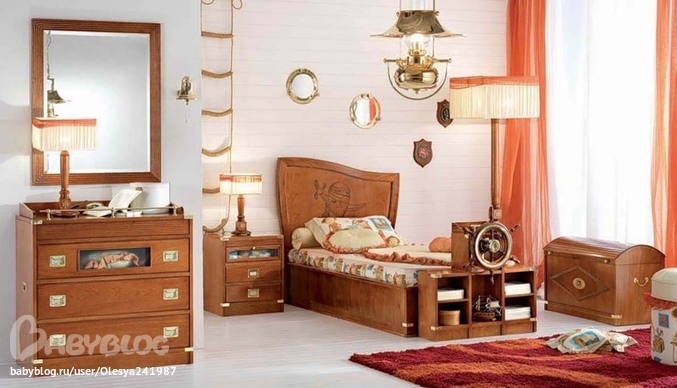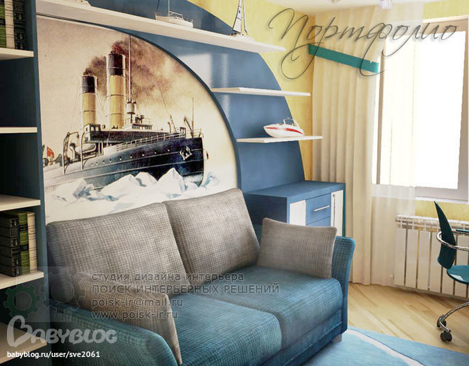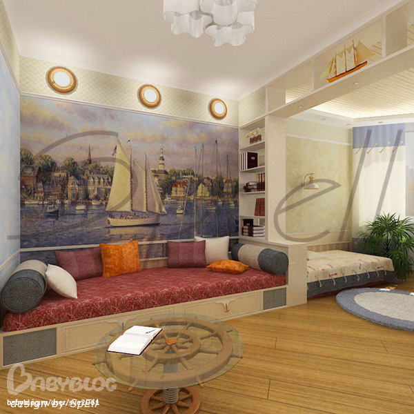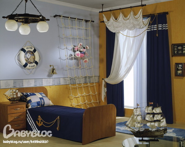 тоже был соблазн сделать тематическую детскую в свое время... мне всё так нравится... морской стиль, путешествия. Но в 1,5 года сын увлекся тачками, к 3 годам поклеили одну стену машинами (хорошо хоть ретро машинами, а не гоночными), три остальных однотонными бежевыми обоями. В поддержку темы принялась вышивать картины с ретро машинами (одну даже успела вышить), а деть стал вешать на стену свои работы. Темерь у меня 5,5 м картинной галереи юного художника и горы разномастных игрушек которые не вписываются ни в один интерьер.Подруга еще до рождения дочки сделала ремонт в морской теме. Красиво так: желтое - пляж, синие - море, между ними бордюр с рыбками, на потолке натяжной патолок с голубыми облоками. А дочь предпочитает винксов.Если вы не планируете частую смену обстановки детской, то подумайте о нейтральной теме, а ребенок подрастет и сам дополнит детали... С года сыну на стену крепила обои и ватманы, чтобы рисовал - зато остальные стены были чистые. И до трех лет в комнате не было высокой мебели - только низенькие стелажи с которых можно было достать любую игрушку и легко убрать ее на место и столик для творчества - за ним рисует, лепит, клеит и т.д. Карандаши, краски, пластелины - всегда были в зоне свободного доступа ребенка, также как и книжки, раскраски, конструкторы. Низкая мебель приучила ребенка к порядку - поиграл и положил на место (страдает только стол - на нем всегда что-то лежит, что нельзя убирать).Кстате, о выборе цвета. Комната у нас нейтральных тонов. Так сын сам попросил добавить чего нибудь синего. Я положила синие думочки на диван и к лету хочу в дополнение к желтым шторкам купить насыщено синего цвета (надеюсь они спасут нас от белых ночей и побудок в 4 утра)