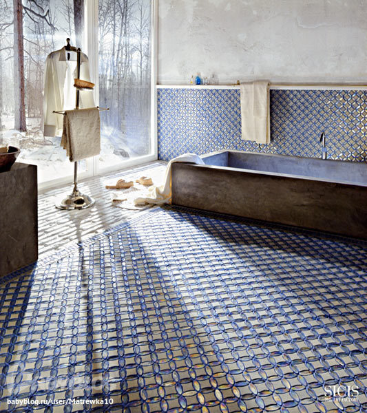 Можно кстати не всю стену плиткой выложить, а как на картинке, выше штукатуркой. Типа модно :) нам дизайнер предлагала в ванной не до потолка, а как раньше красили стены, а под потолок побелка :)))) у меня такая ассоциация :))
