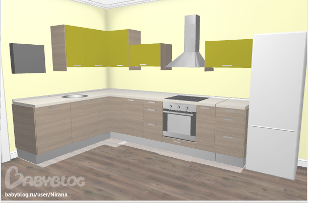 Интерьерное решение кухниВыбрала два вариана в ИКЕА. Один красный, второй салатовый с серым зебрано.