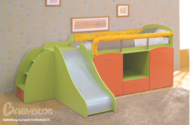 Интерьерное решение детской комнатыОчень хочется сделать комнату для своего любимого сыночка. Что имеем: комнату 432 на 221. Хочется чтоб была кровать с горкой, было место для вещей(их очень много), место для игрух (их очень очень много) и еще доп. спальное место, скажем кресло-кровать. Пробороздив просторы интернета нашла несколько вариантиков: