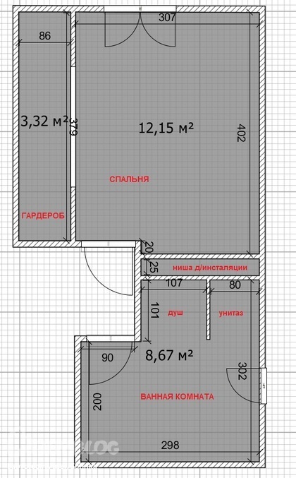 Ни ванной нормальной, ни гардеробной полноценной и огромная спальня.