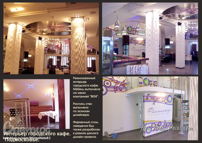Разработать предстояло не только интерьеры, но и фирменный стиль, цвета, шрифты, логотип, которые впоследствии использовались бы в рекламе этого заведения.