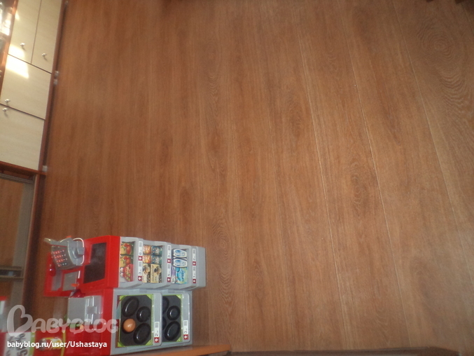 Мы будем в коридоре, кухне, столовой делать дорогой толстый линолиум. Ламинат громкий, у подруги ребенок на детской машинке носится по ламинату такой шум. Линолиум как-то уютнее.