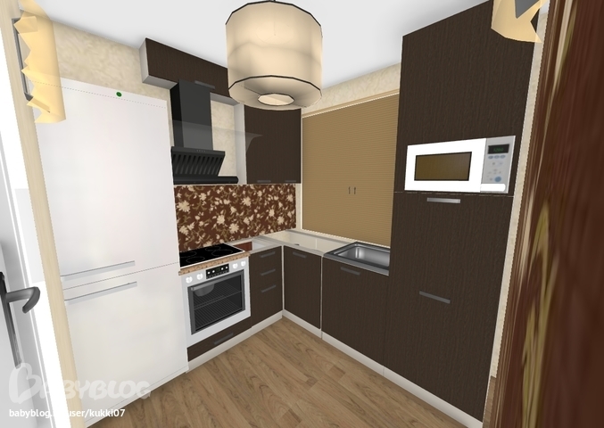 В таком ограниченном пространстве нужно разместить холодильник, посудомойку, варочную решили 2 конфорки, плита будет с функцией свч) а, ну и вытяжка. Обеденной зоны не будет, она переносится в гостинную. Таким образом гарнитур можно поставить буквой П. Я уже изнасиловала икеевсий планировщик