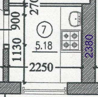 Вся проблема в стене напротив окна, точнее в расстоянии от проема- там где-то 30 см получается. Уже склоняюсь к раковине у окна, и тогда все влезет)) Может еще что-то можно придумать, помогите пожалуйста