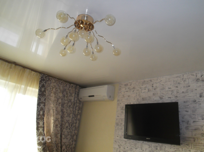 потолок у нас натяжной, глянец-белый, особо заморачиваться не стали...)))