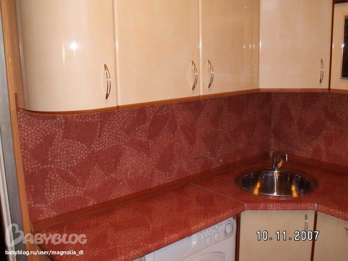 где батарея - стол прямоугольный, получается всего 3 места...зато всё-всё уместилось на маленькой кухонке, правда без холодильника)