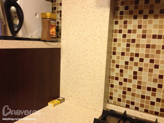 У нас такой короб, при желании отодвигается. Под цвет столешницы