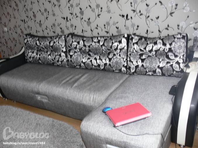Как и мечтала у нас теперь большой диван с большим спальным местом. Т.к. когда к нам прилетают мои родители у нас всегда возникала проблема. Высокому папе неудобно было спать.