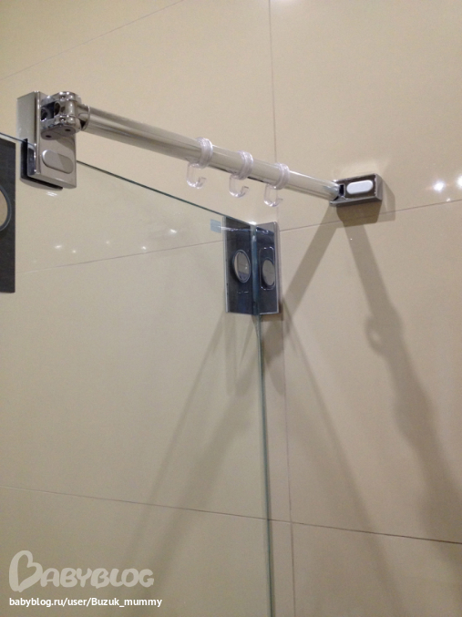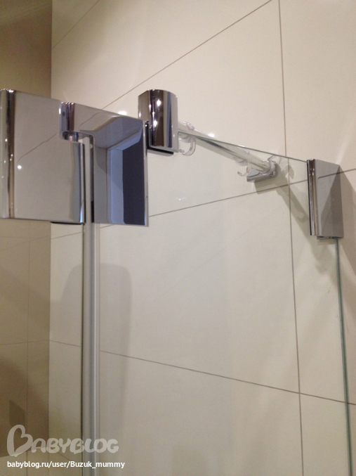 Вот так выглядят петли, на которых висят дверцы: (пришлось дополнительно еще заказать стабилизаторы, прислали дополнение к заказу от завода, чтобы дверцы крепко держались), забавно, что висят крючочки, на которые можно повесить полотенца, на них реально не попадает вода и можно вытереться прямо в душевой.