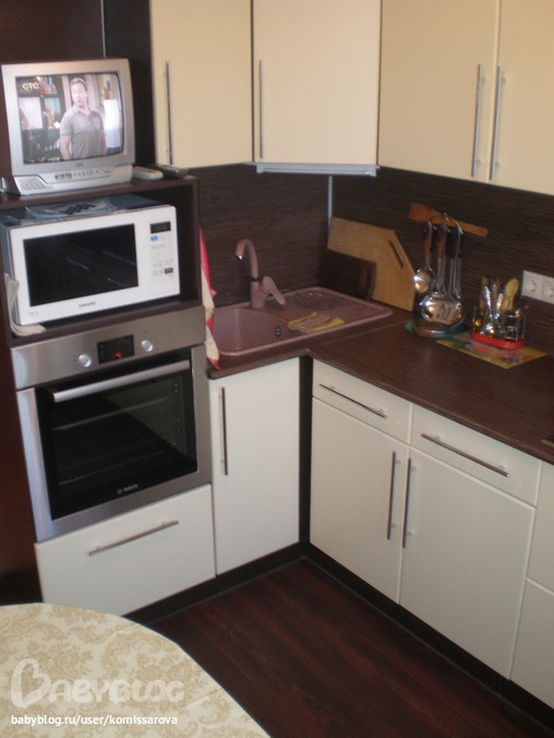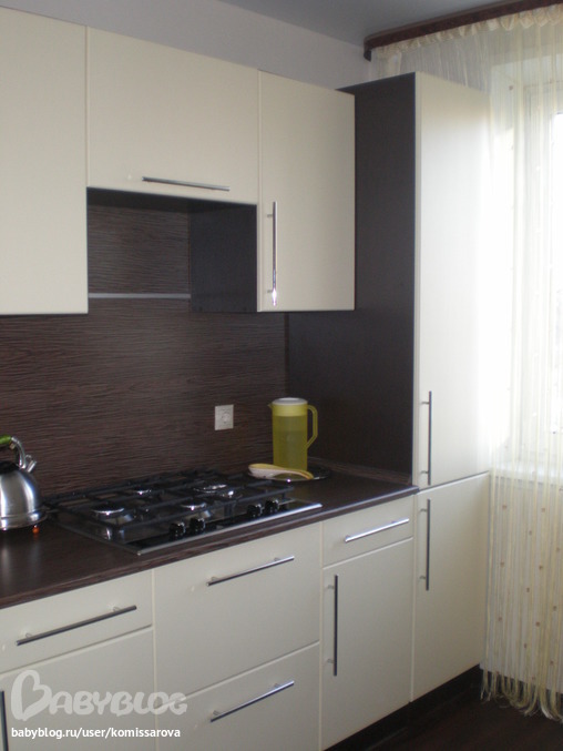 Очень приятное сочетание цветов мебели. У нас похожее, правда уже давно делали, сейчас хочется больше в сторону прованса! Но очень нравится! Глаз радует)