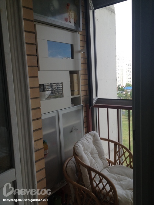 все это конечно здорово! но...у нас на старой квартире был не застеклен. Ни один шкафчик не выдержит открытого балкона. У нас там стояла старая дверь (сняли за ненадобностью) упакованная в несколько слоев в толстые мусорные пакеты. За год разадрасля весь целофан и дверь стала такого вида, что мама не горюй! И постоянно листва, пыль, грязь на балконе. Летом еще пйх тополиный. Чистоту там поддерживать было ни как нельзя. Сама бы с удовольствием посидела на таком балкончике вечерком))))