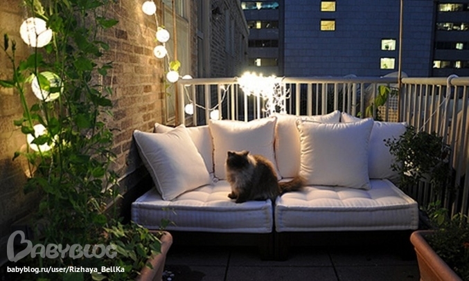 Все это, конечно, безумно красиво и здорово, но для нашего климата - не айс. Мы с мужем прекрасно чаек попиваем на застекленном балконе на диванчике, правда, у нас панорамное остекление... Сорри