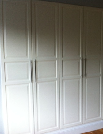 Насчет сборки, начинать надо на полу и вдвоем, там подробная инструкция как. Ручки делайте как на втором фото, как то симитричней. А чтоб было ровно нужен уровень строительный.