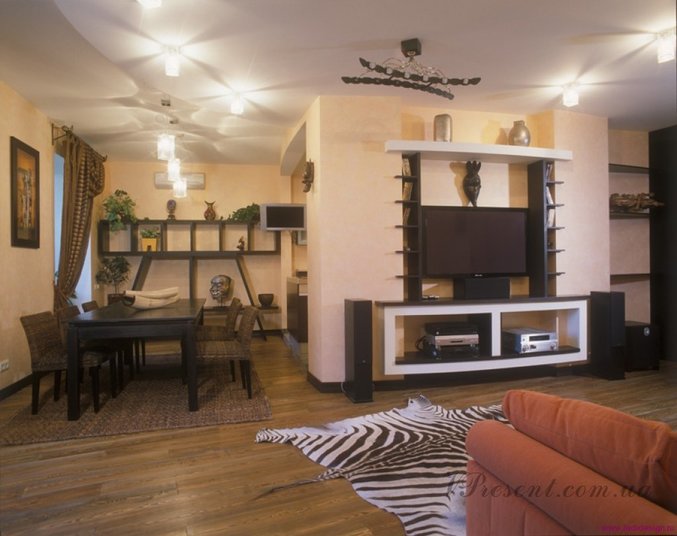У нас детская в чисто африканском стиле! Очень давольна( НО ) это детская все же.Для гостиной я выбрала марроканский стиль-там смесь и арабского, африканского, египетского стиля.Очень теплые цвета, цвета заката и рассвета, интерьер также дополняют картины, текстиль с соответствующими стилям орнаментами.Ощущение лета,тепла.Неописуемый уют!