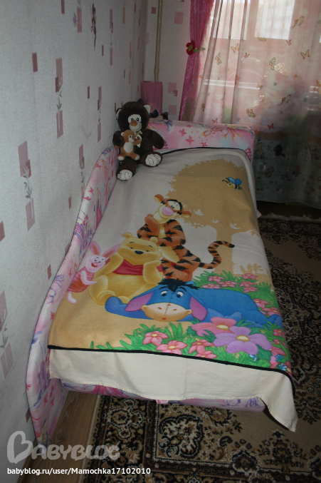 мы вот сейчас болеем спим пока на моем диванчике,а так обычно я ложусь к ней( она у нас только с титей засыпает) она как у снет я иду к себе,она бывает ночью встает и просит чтобы я с ней полежала...