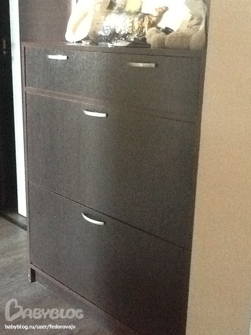 тоже делали на заказ, т.к. оооочень мало места было, да и цвет не нравится у стандартных обувниц, а нам нужна была под интерьер именно черно-белая, заказывала в той же фирме где и шкафы купе заказывали