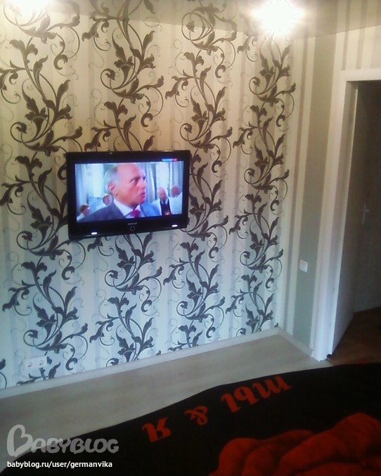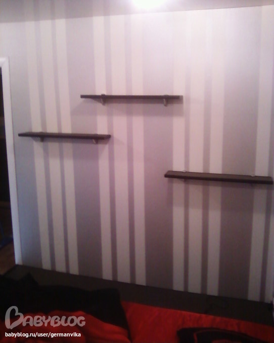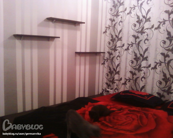 Ну вот, пока как-то так, на полочках конечно же будут фото в рамках, всякие свечи и "финтифлюшки", под телевизором комод из такого же материала как и подиум, в изголовье кровати, на хромированной палке две длинные красивые подушки (пока их нет, т.к. ткань только на 20-е число заказана,ну и на окне какая-нибудь шторка... Только вот какая пока не могу определиться... Девочки, может после просмотра фото у Вас есть какие-нибудь идеи, подкиньте, а?