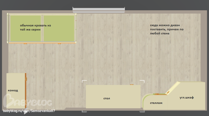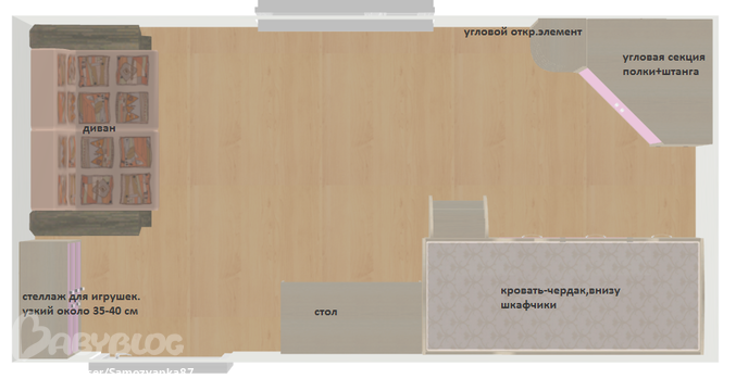 Будет детская кровать-чердак, а вместо обычной думаю поставить диван. Но он явно будет шире :(( Не хочется загромождать и без того маленькую комнату. Нужно место, где можно сидеть. Так же к нам часто приезжают родственники, им нужно место, чтобы спать. Голова уже кругом, как всё это организовать в такой маленькой комнате?!