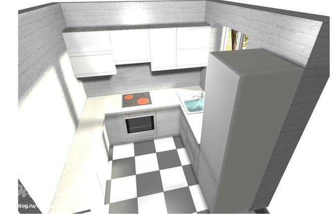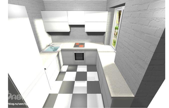 Только, на мой взгляд, рисунок пола маленькой кухни должен быть мельче. Хотя это же просто эскиз?