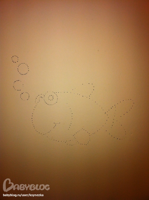 затем приклееваем наш трафарет на нужную поверхность и промазываем дырочки краской.(или как я делала-маркером)