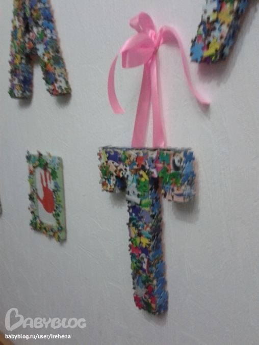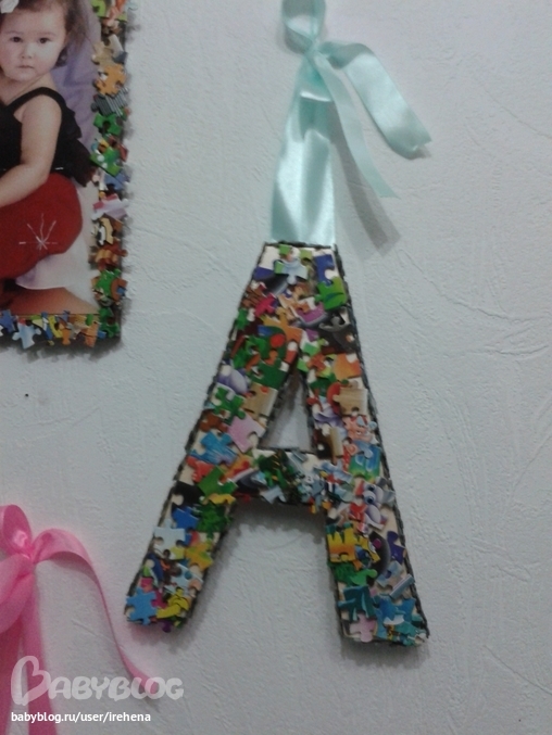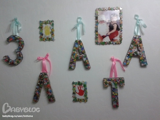 Креативная идея! Мелкие пазлы вечно теряются и картинки полной не бывает. Вот куда их!!! Трафареты букв из чего сделали?