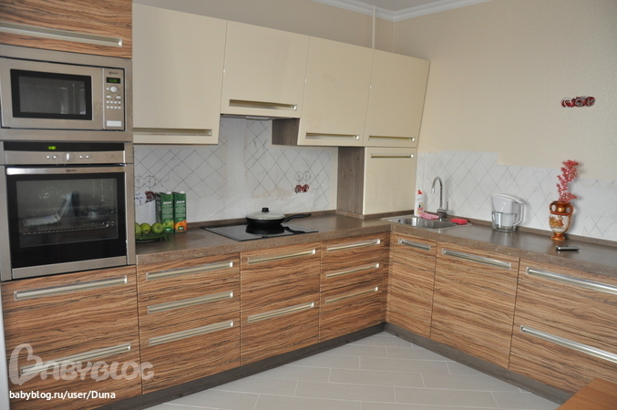 А на счет фартука - ты права, не обязательно его под столешницу делать, у меня разное - и смотрится нормально на мой взгляд... Просто если разное делать, то что-то нужно выделить, например фартук, а столешницу максимально нейтральных тонов, под основной тон можно даже сделать