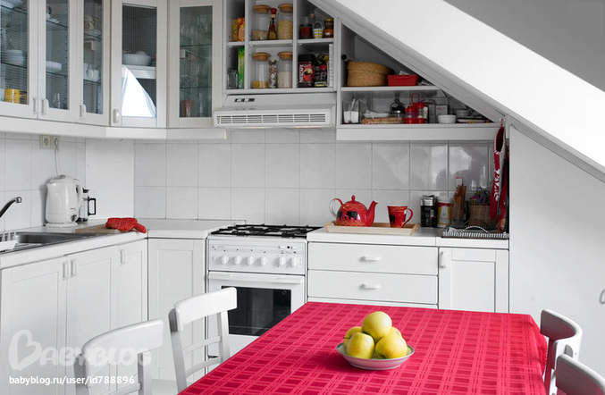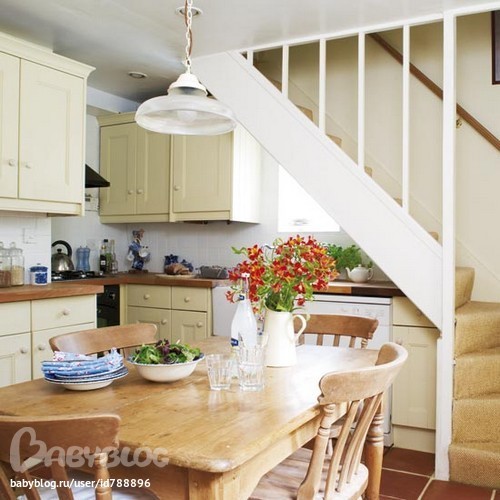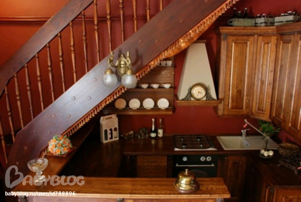Интерьерное решение кухниДевочки. мозг уже совсем кипит. Планирую кухню в нашем новом доме и всё бы ничего (ремонт не первый), но задача для меня, непрофессионала, очень уж сложная. У меня объединенная кухня-гостинная и кухня(сама мебель) ПОД ЛЕСТНИЦЕЙ на второй этаж.