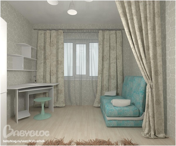 Наша будущая комната, правда думаем поменять местами диван со столом. И живем мы в комнате 3.30х4,0.