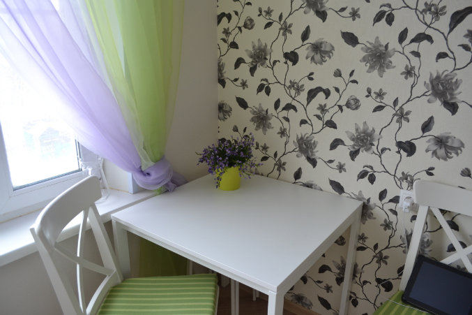 обои и купила в цветочек,но всё же по-меньше)а вы стол в икеа покупали(стулья точно оттуда)?кухня 5,2-ну кто вот такие придумал кухни?(((