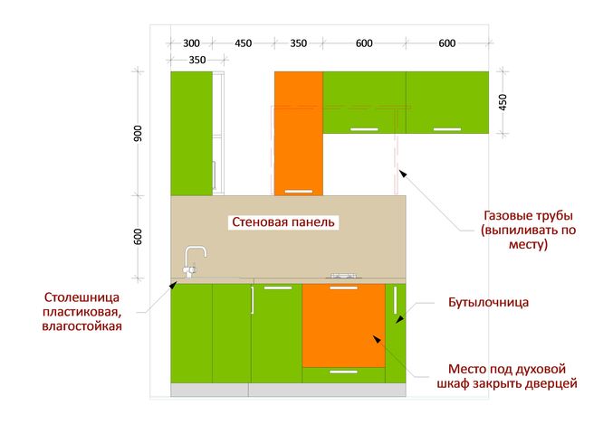 Там еще холодильник в конце будет, так что не думайте, что я плиту к окну поставила))