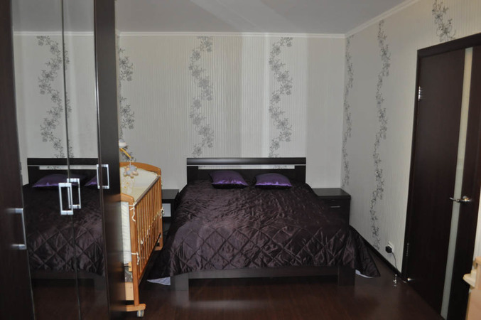 2. Мебель в спальне цвета венге (шкаф, кровать, тумбочки)