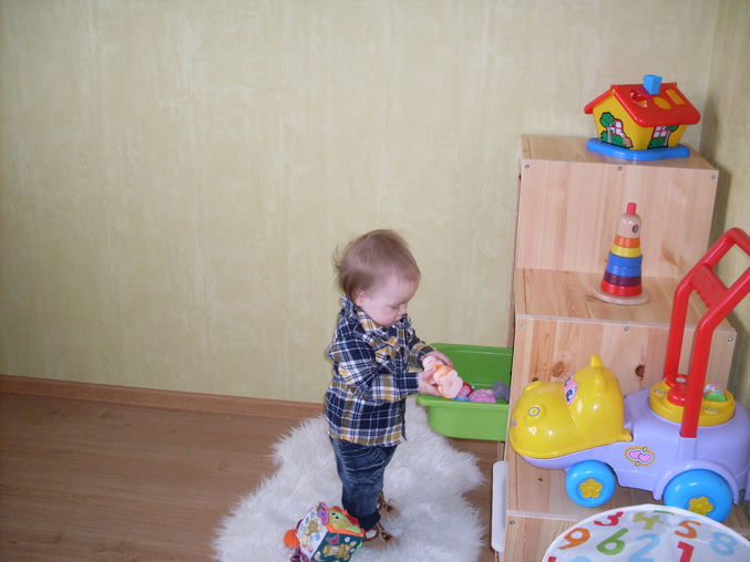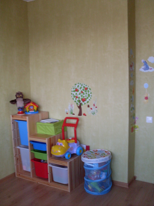 Это у нас ещё ремонт не законченный,ещё ничего из мебели нет,кроме стелажика под игрушки,а то ну везде валяются